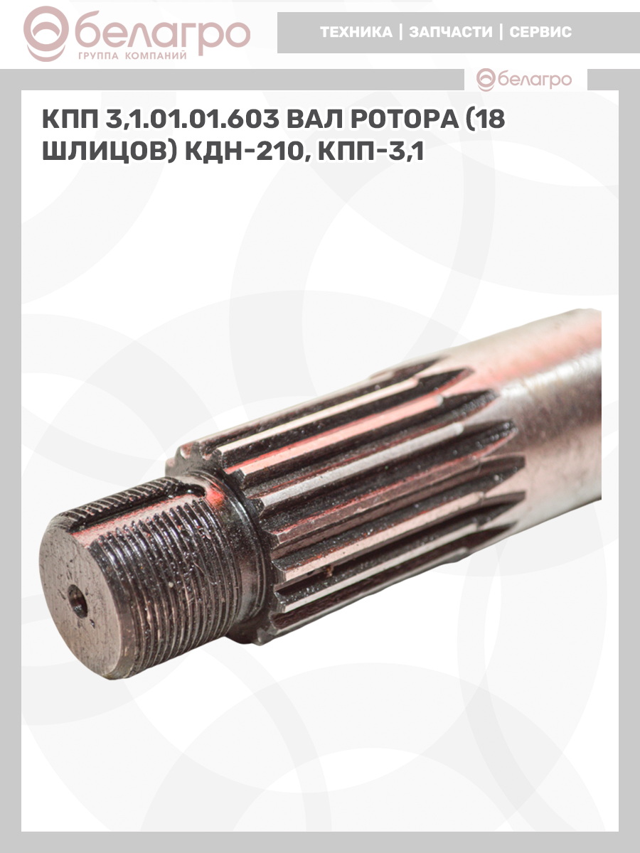КПП 3,1.01.01.603 Вал ротора (18 шлицов) КДН-210, КПП-3,1
