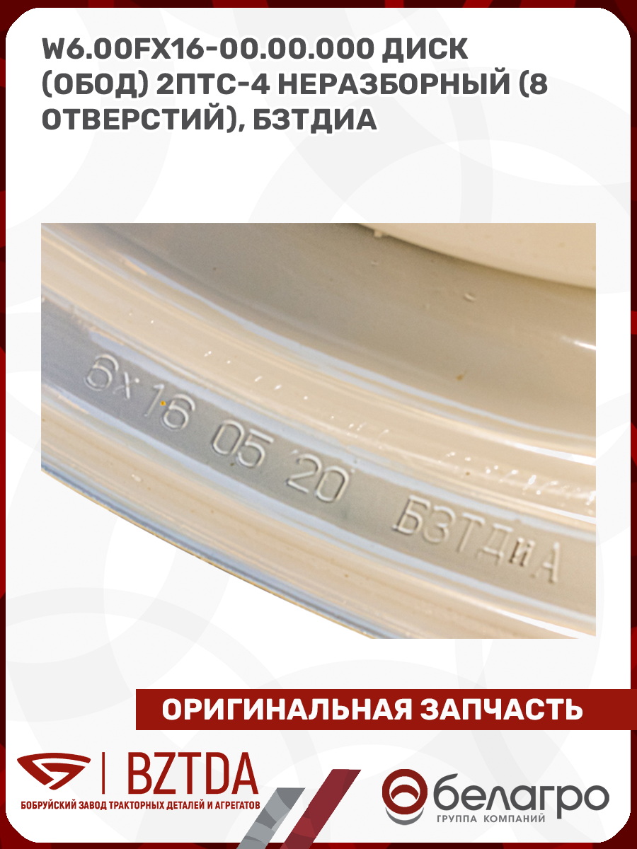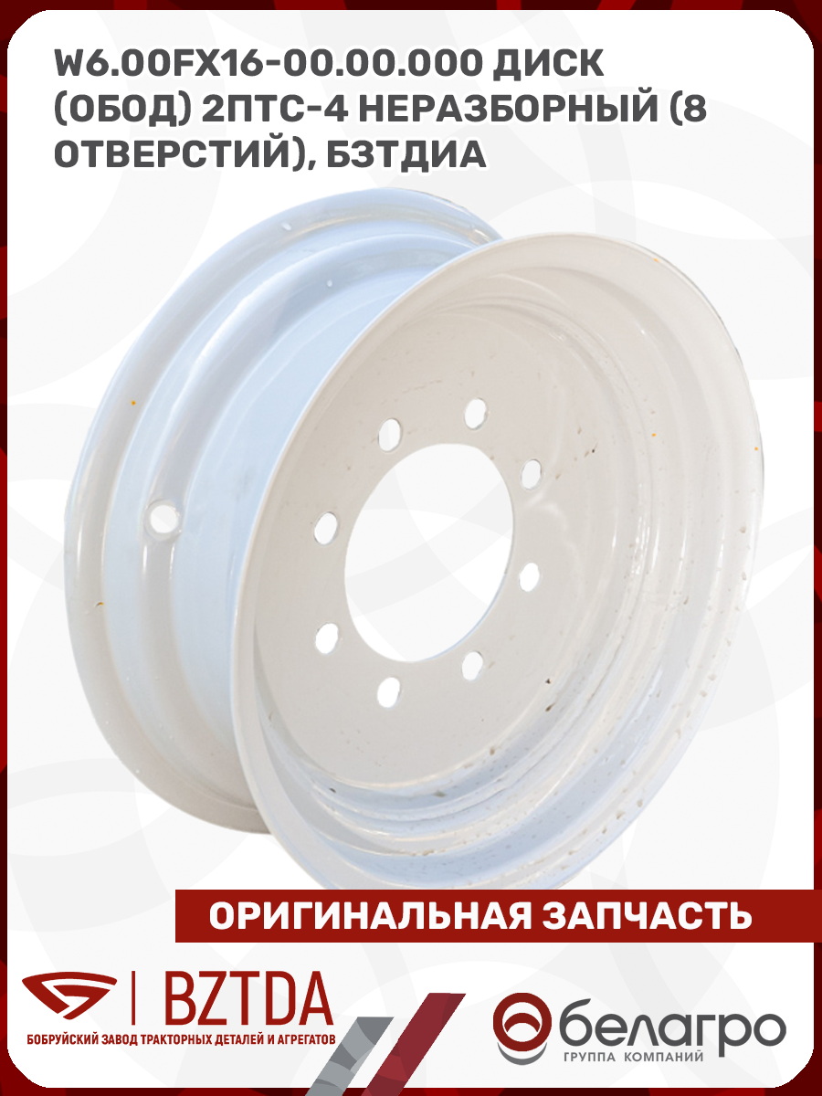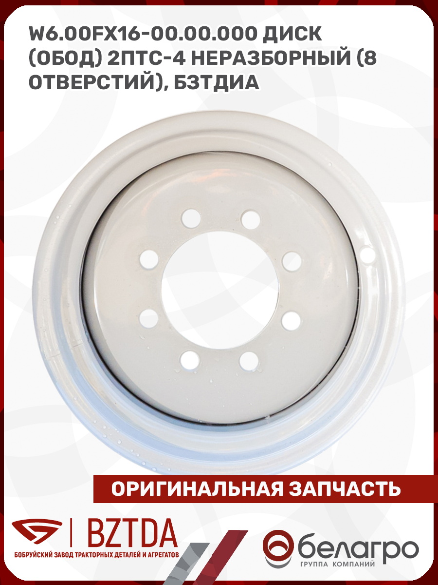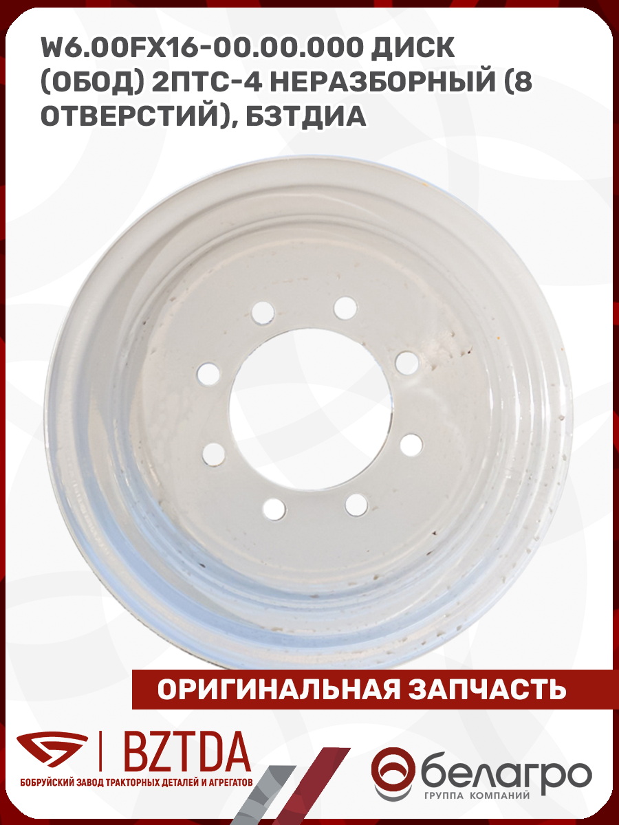 W6.00Fx16-00.00.000 Диск (обод) 2ПТС-4 неразборный (8 отверстий), БЗТДиА