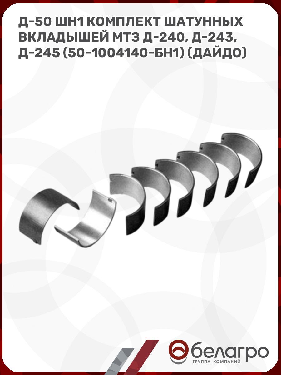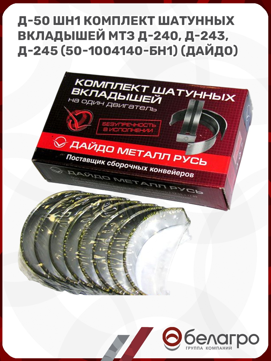 Д-50 ШН1 Комплект шатунных вкладышей МТЗ Д-240, Д-243, Д-245 (50-1004140-БН1) (Дайдо)