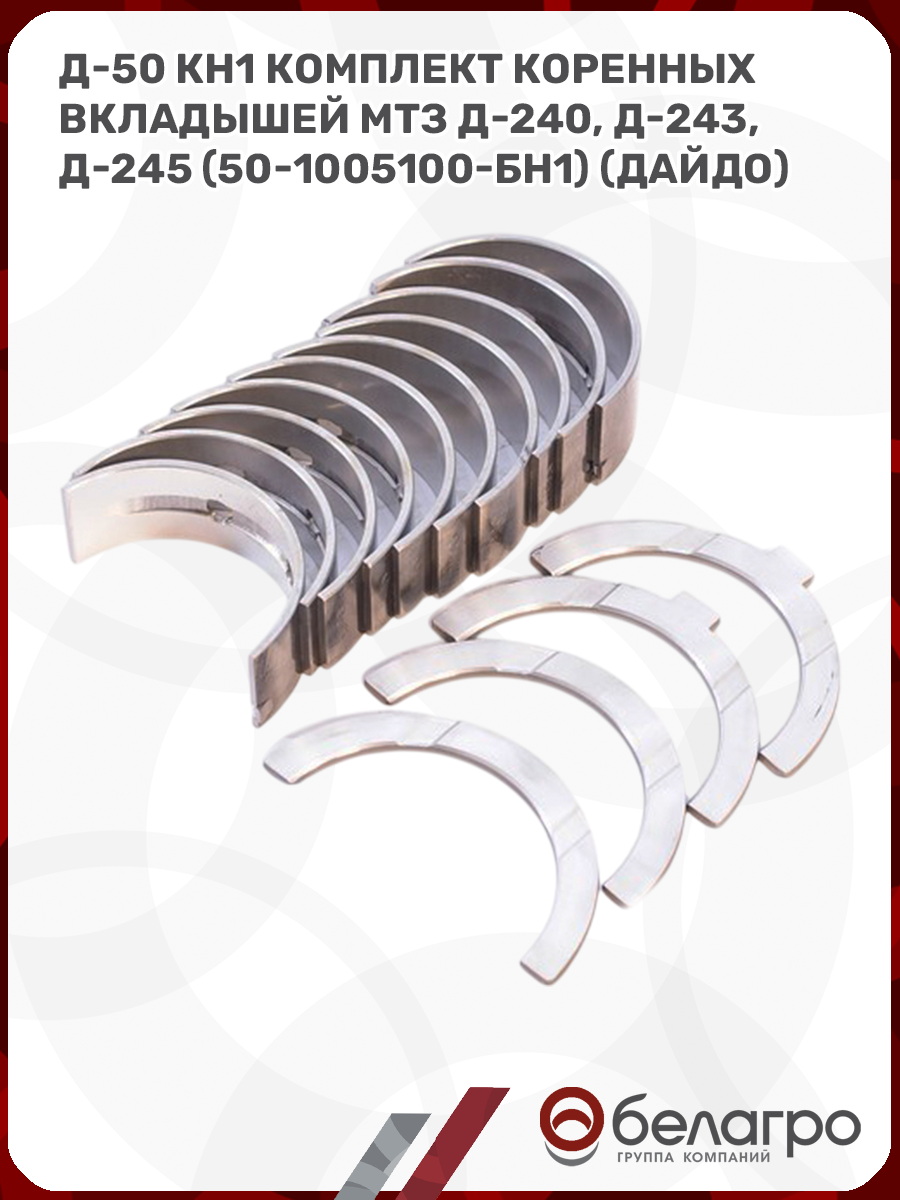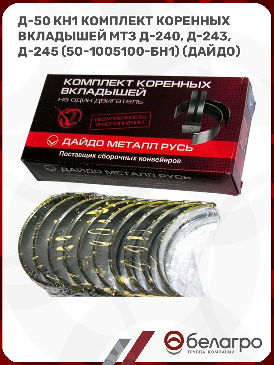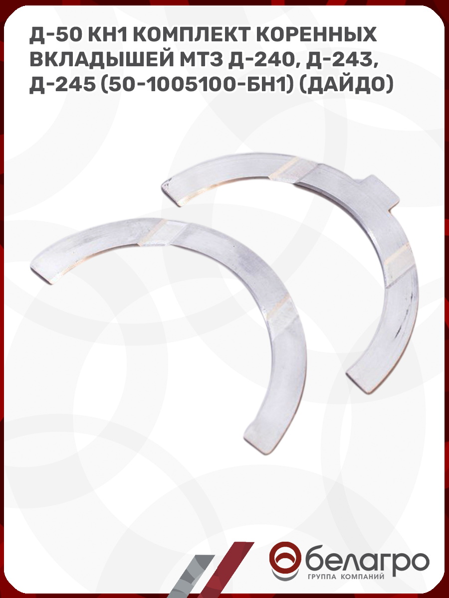 Д-50 КН1 Комплект коренных вкладышей МТЗ Д-240, Д-243, Д-245 (50-1005100-БН1) (Дайдо)