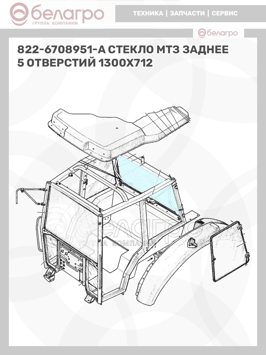 822-6708951-А Стекло МТЗ заднее, 5 отверстий, 1300х712, Беларусь