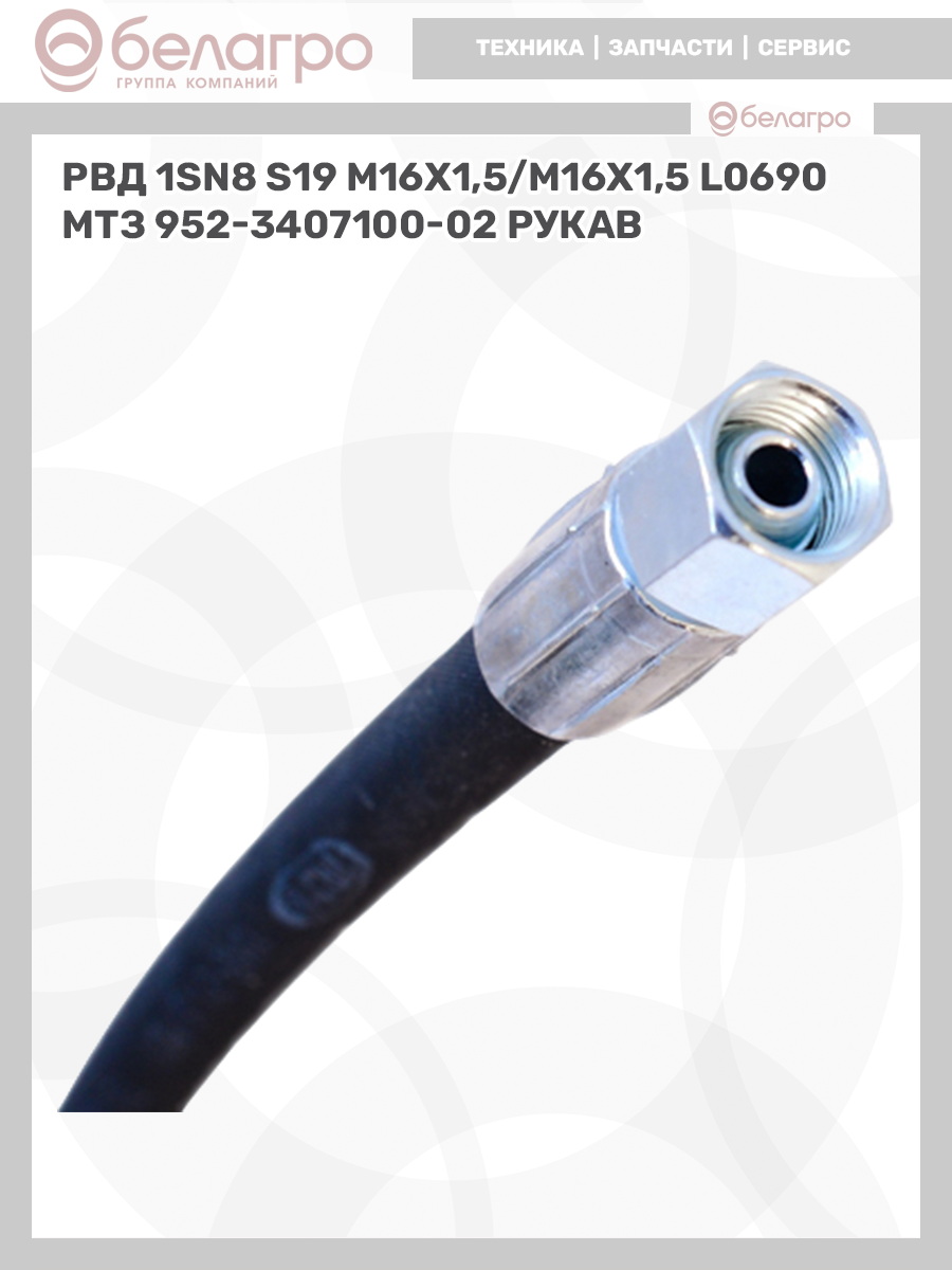 РВД (Рукав высокого давления) 1SN8 S19 (М16х1,5/М16х1,5) L0690 (МТЗ 952-3407100-02) рукав
