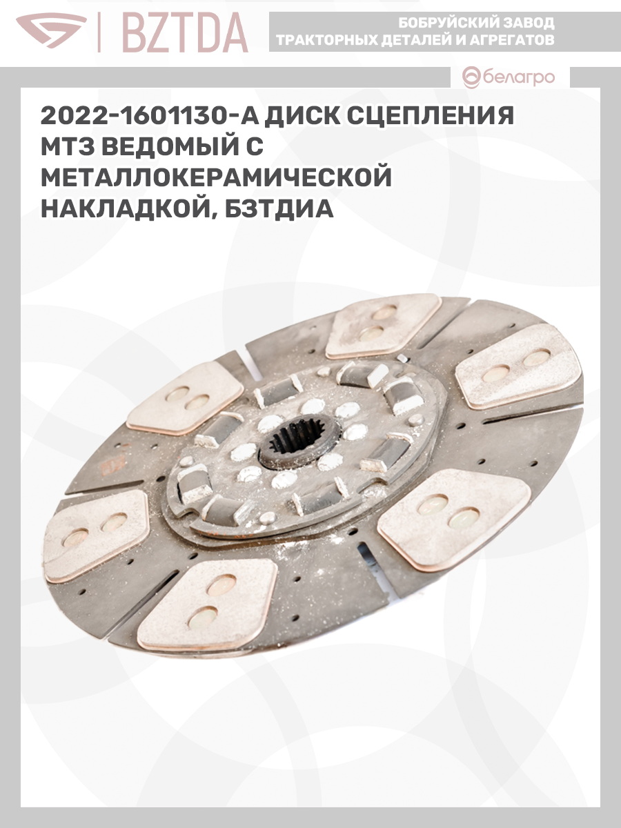 2022-1601130-А Диск сцепления МТЗ ведомый (с металлокерамической накладкой), БЗТДиА
