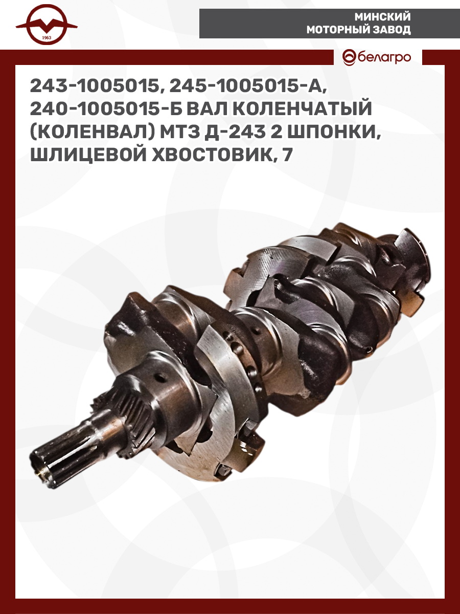 243-1005015/245-1005015-А/ Вал коленчатый МТЗ, Д-243 (240-1005015-Б) 2 шпонки, шлицевой хвостовик, 7 отверстий (коленвал), ММЗ