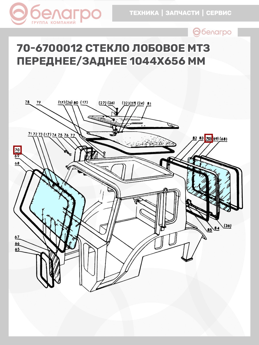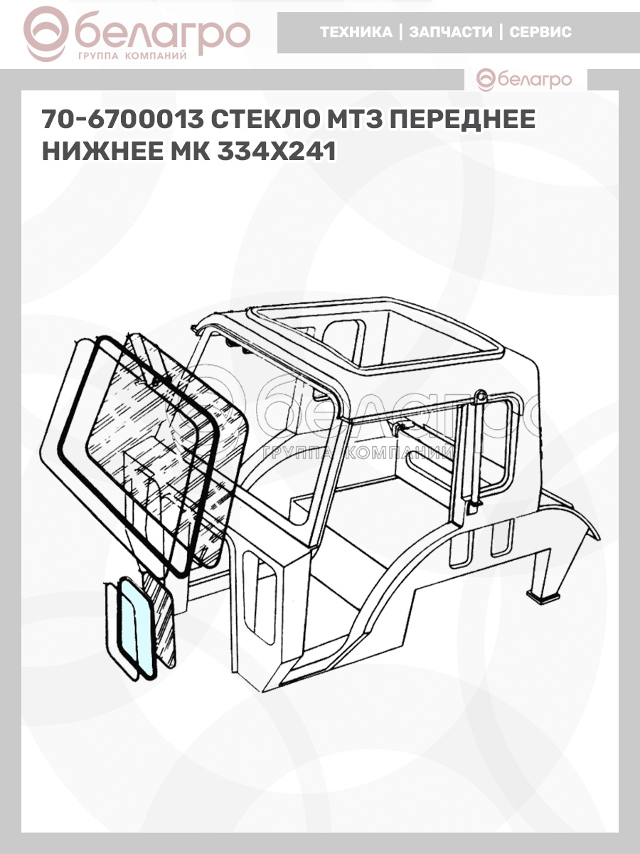 70-6700013 Стекло МТЗ переднее, нижнее МК (334х241), Беларусь