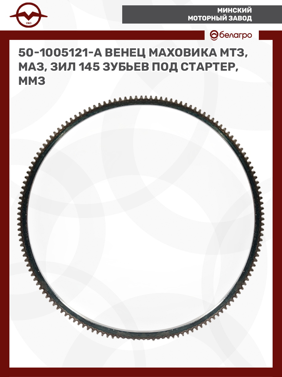 50-1005121-А Венец маховика МТЗ, МАЗ, ЗИЛ 145 зубьев под стартер, ММЗ