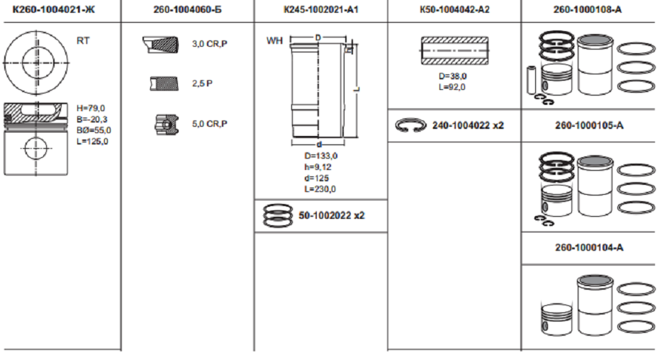 Поршнекомплект "Эксперт" Д-245/-260 (ЕВРО-2) палец 38 мм (полный комплект)