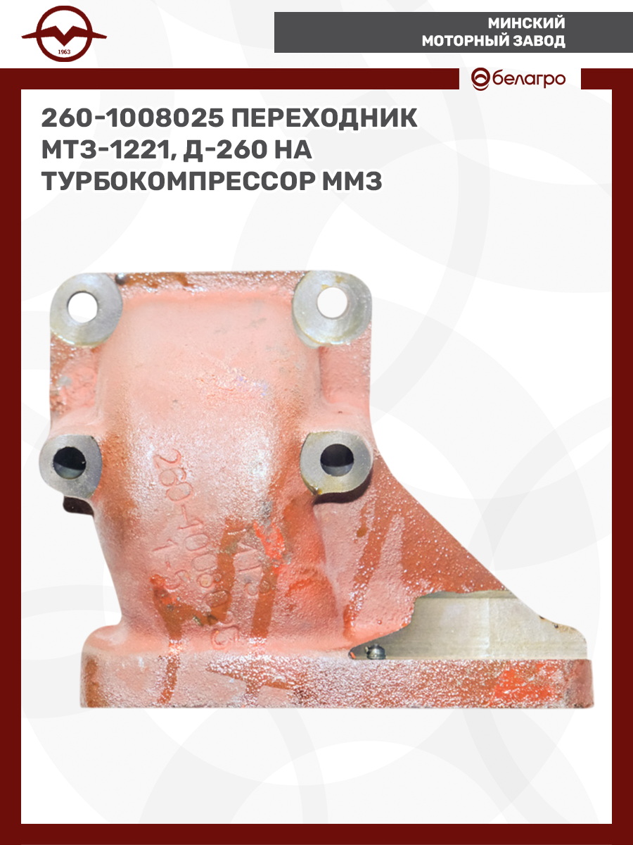 260-1008025 Переходник МТЗ-1221, Д-260 на турбокомпрессор ММЗ, Беларусь