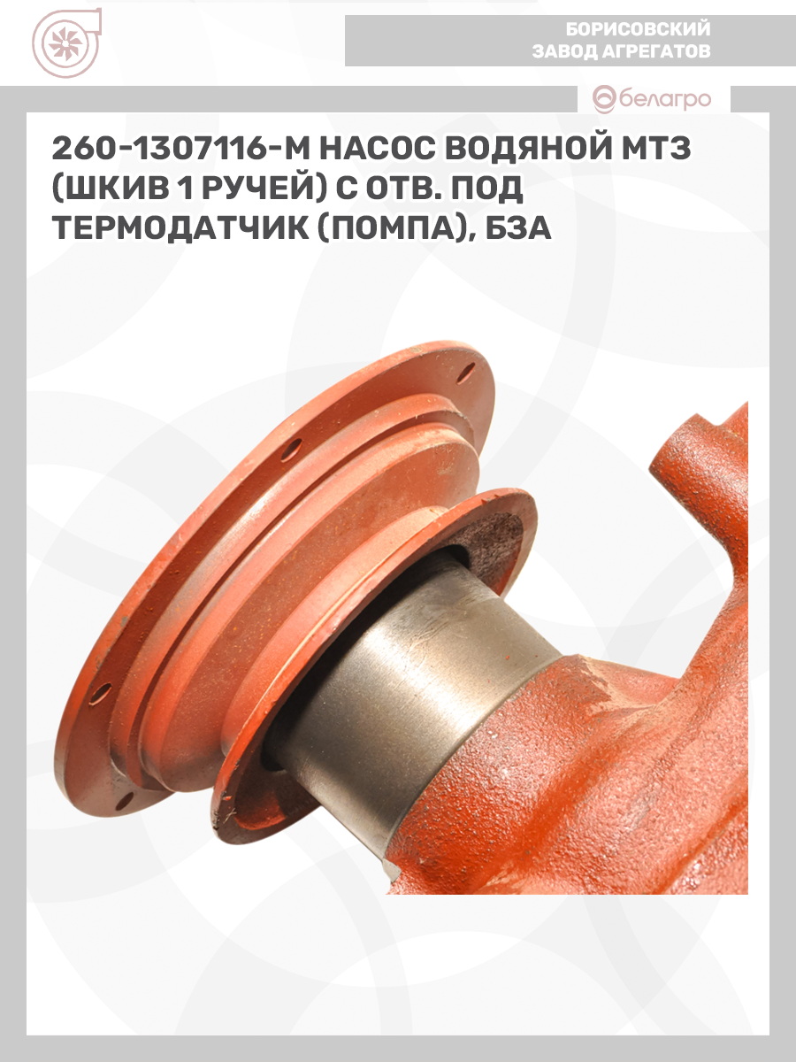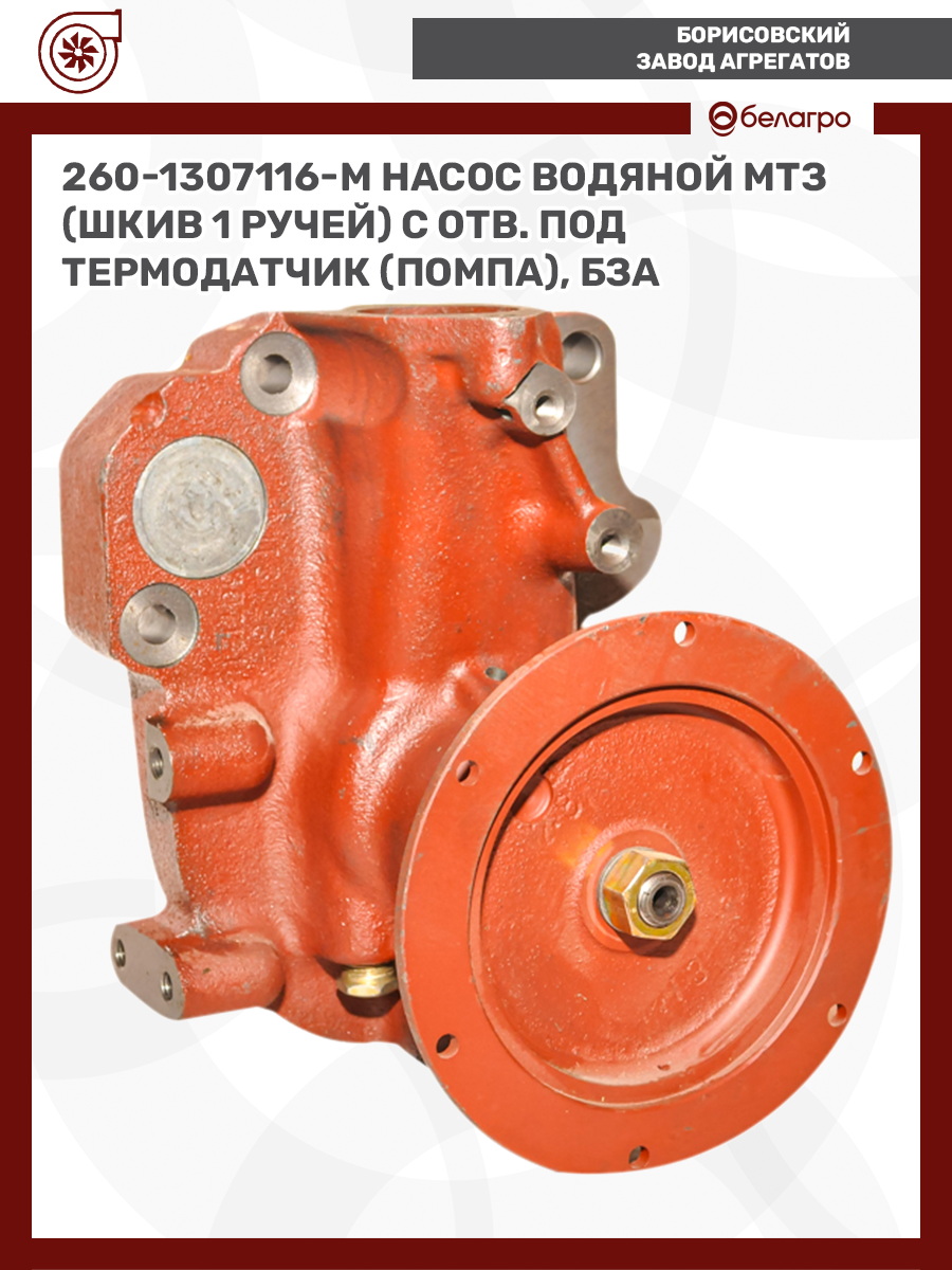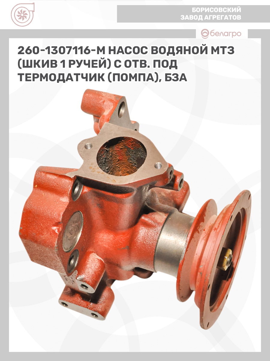 260-1307116-М Насос водяной МТЗ (шкив 1 ручей) с отв. под термодатчик (помпа), БЗА
