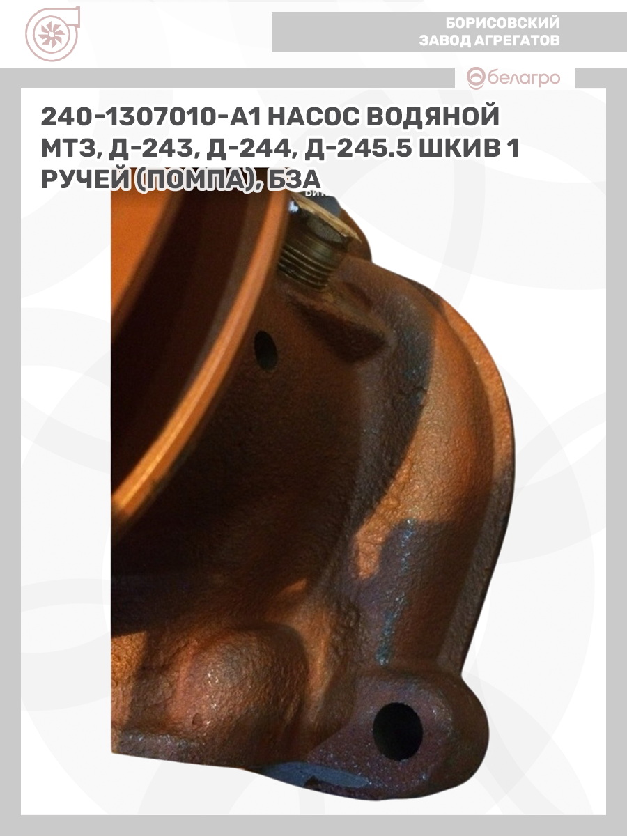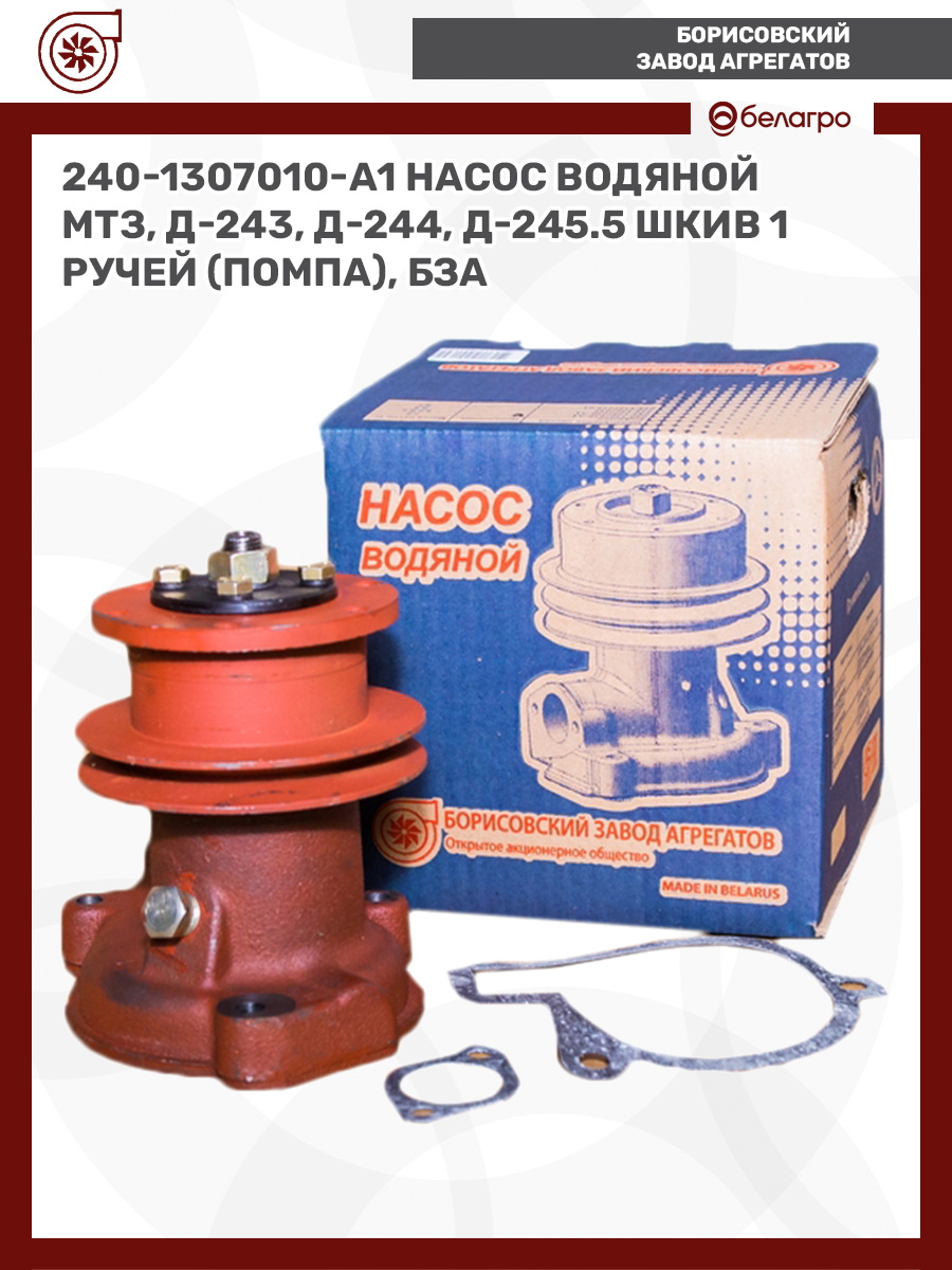240-1307010-А1 Насос водяной МТЗ, Д-243, Д-244, Д-245.5 (шкив 1 ручей) (помпа), БЗА