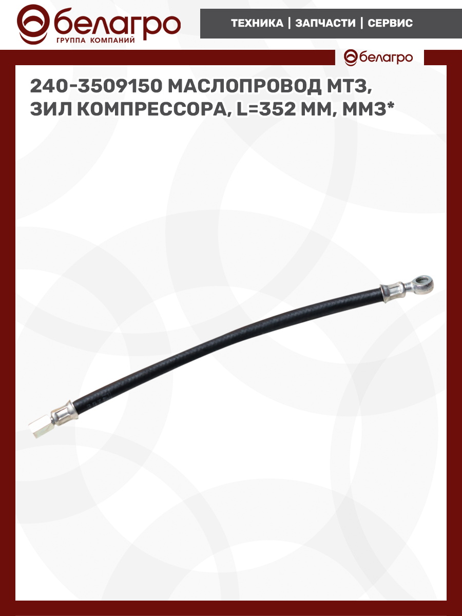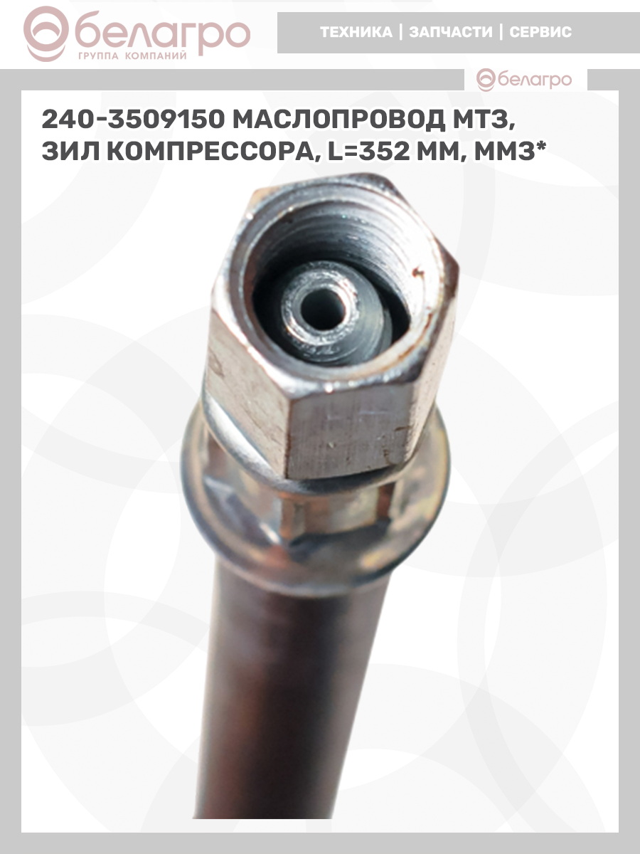240-3509150 Маслопровод МТЗ, ЗИЛ компрессора, L=352 мм, ММЗ*