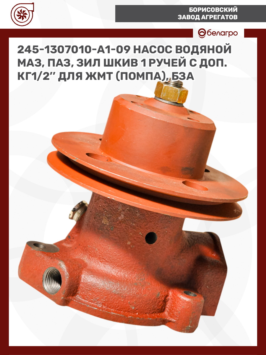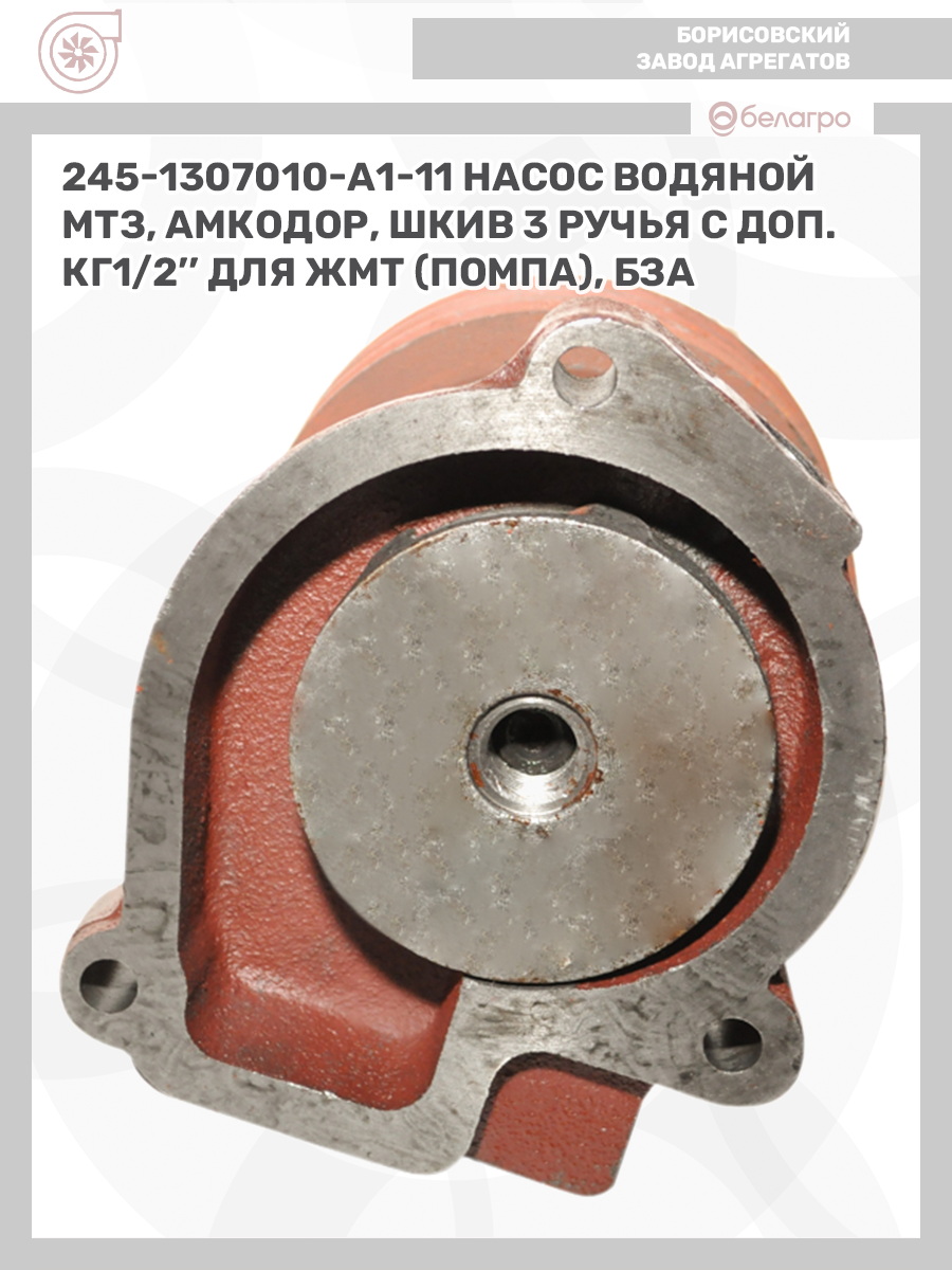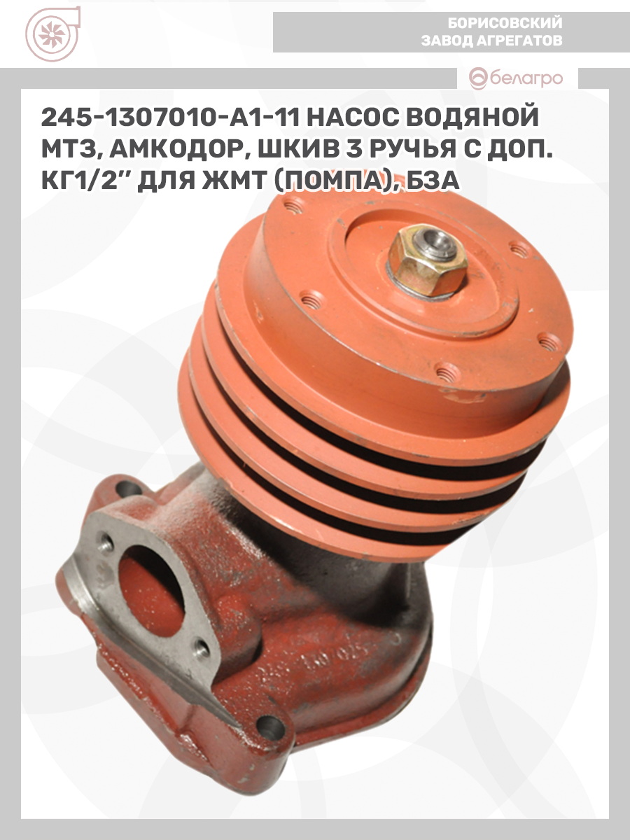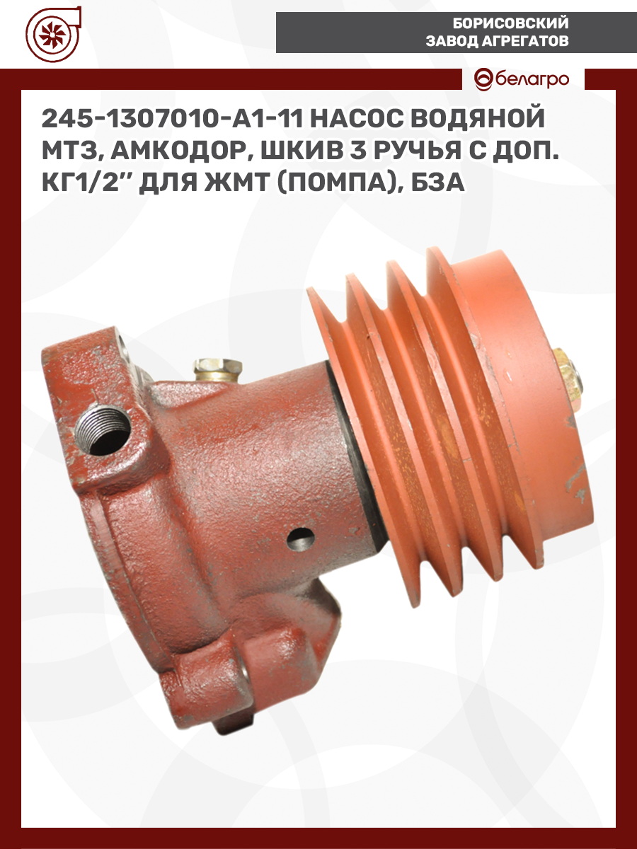 245-1307010-А1-11 Насос водяной МТЗ, Амкодор, (шкив 3 ручья) с доп. КГ1/2'' для ЖМТ (помпа), БЗА
