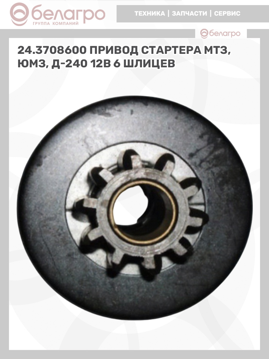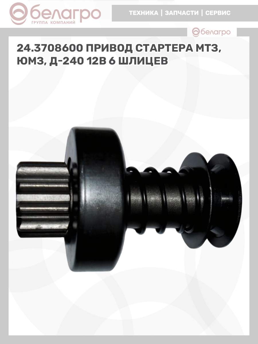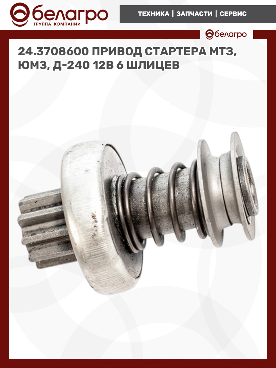 24.3708600 Привод стартера МТЗ, ЮМЗ, Д-240 12В (6 шлицев), (А)