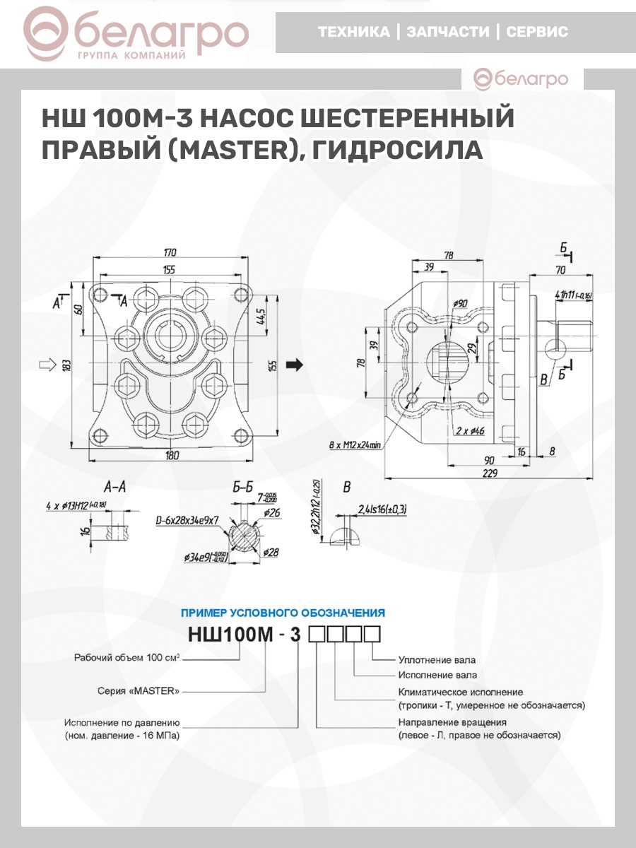 НШ 100А-3Л Насос шестеренный левый (ANTEY), Гидросила