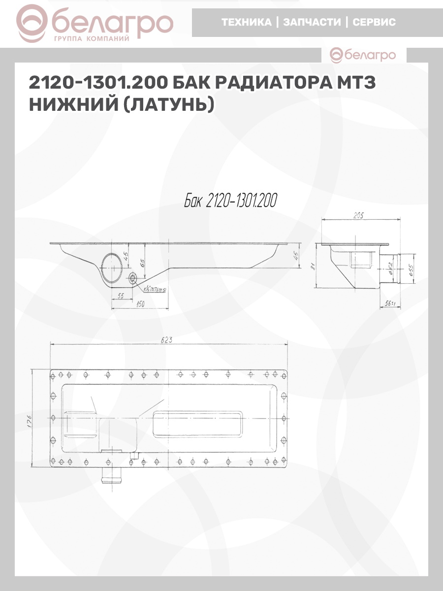 2120-1301.200 Бак радиатора МТЗ нижний (латунь), РФ