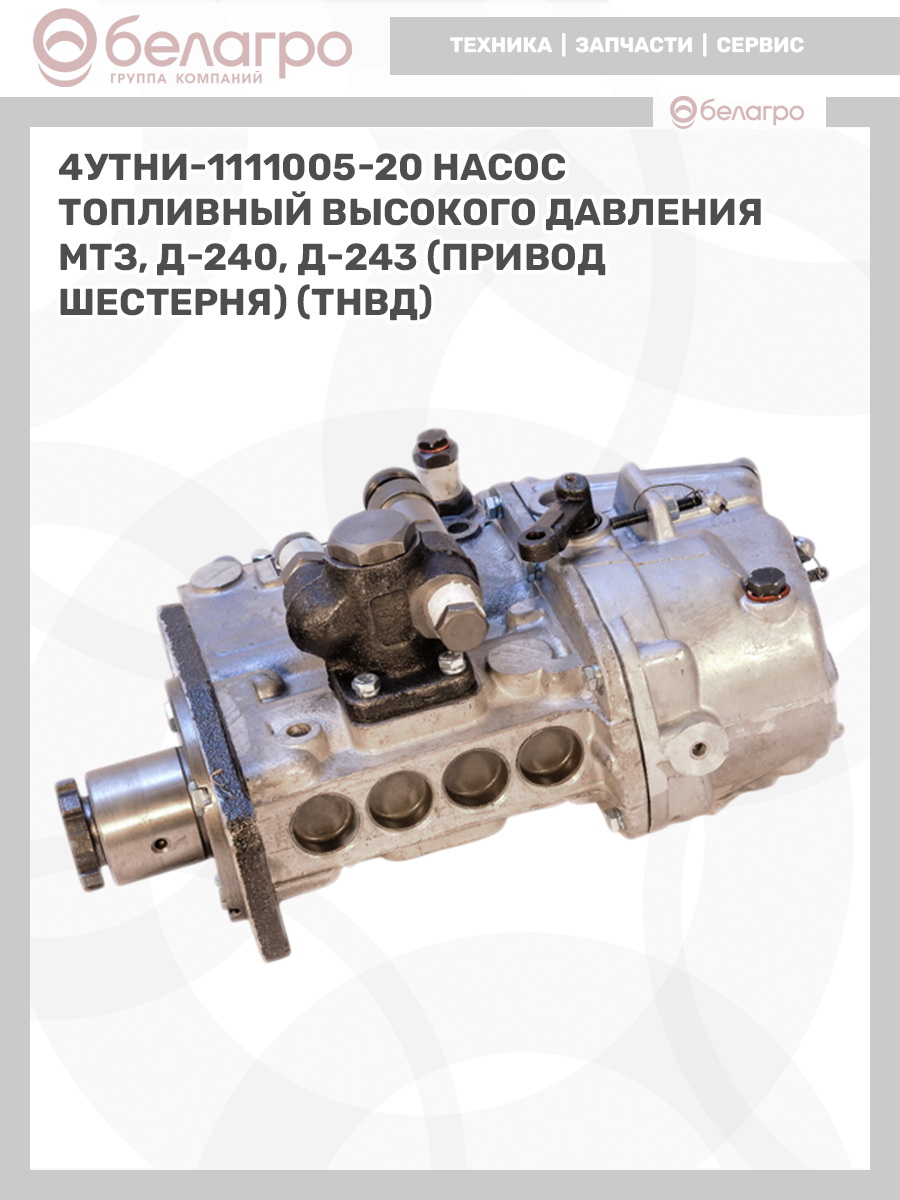 4УТНИ-1111005-20 Насос топливный высокого давления МТЗ, Д-240, Д-243 (привод шестерня) (ТНВД), РФ