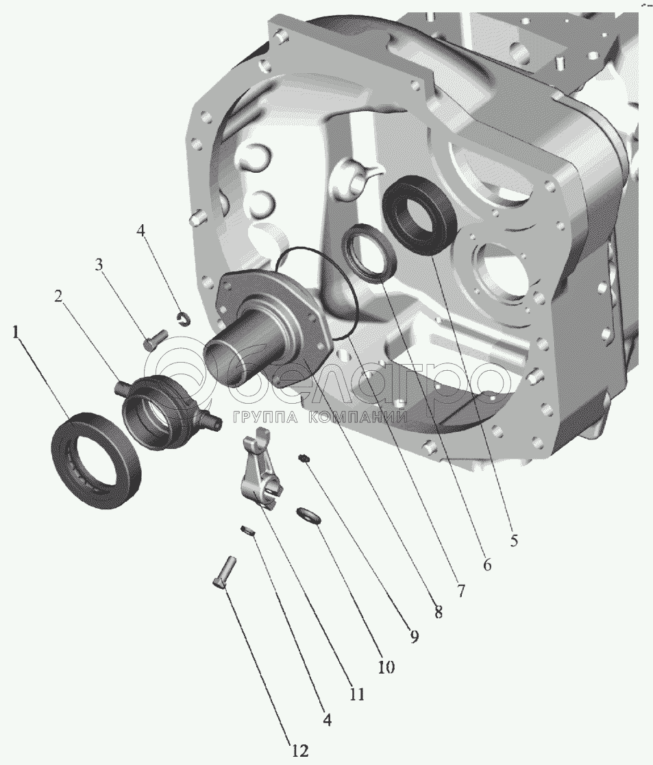 Каталог запасных частей к технике: МТЗ 923.4. Корпус сцепления (отводка) (для тракторов с гидромеханической трансмиссией)