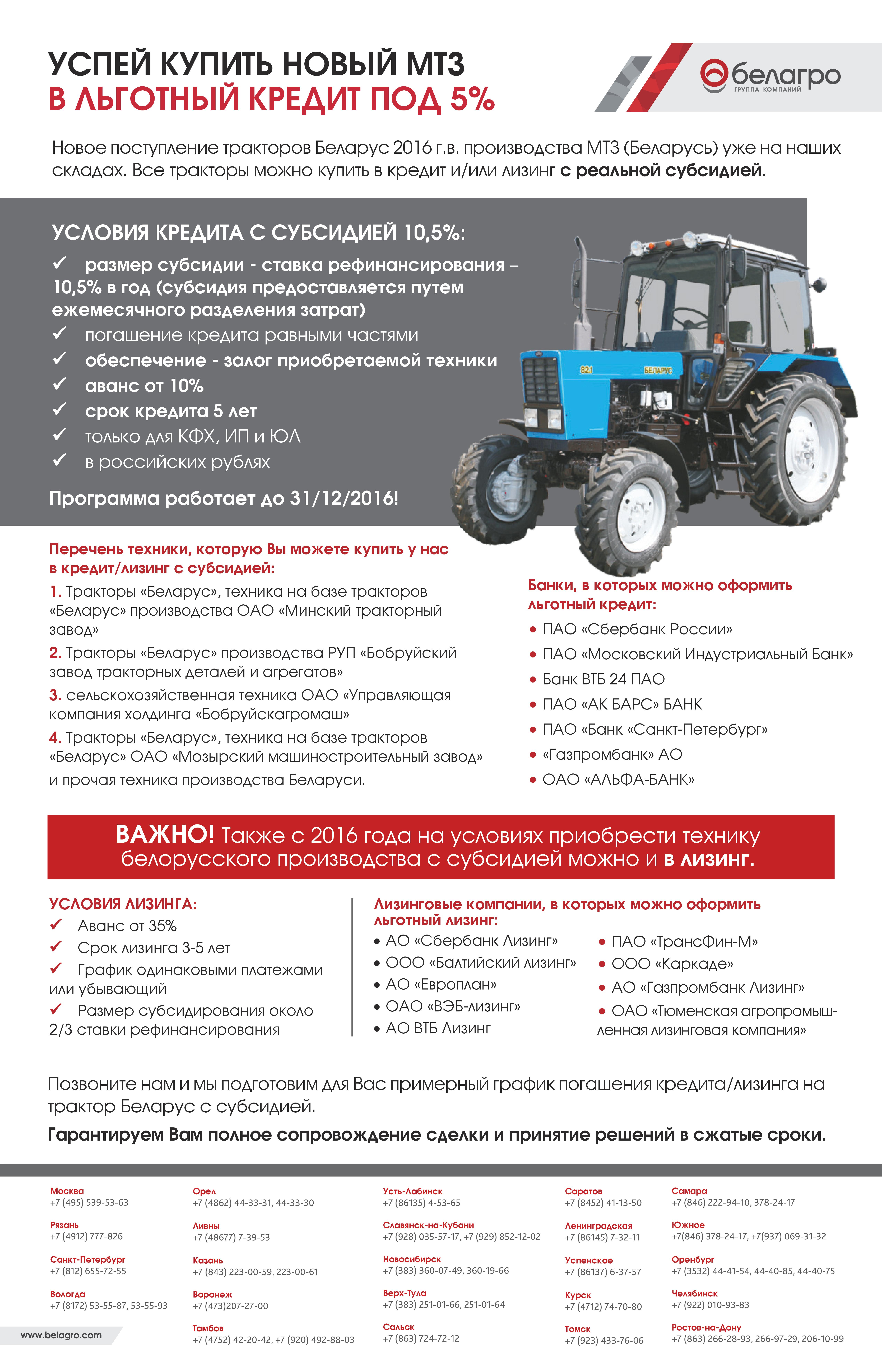 Успей купить НОВЫЙ МТЗ в кредит или лизинг с субсидией 10%