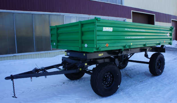 Прицеп тракторный самосвальный предназначен для перевозки различных сельскохозяйственных и промышленных грузов по всем видам дорог и в полевых условиях. Разгрузка прицепов трехсторонняя, что позволяет производить разгрузку практически в любых условиях и ситуациях. Наличие поворотного круга на передней оси придает прицепам большую маневренность. Практичность и неприхотливость конструкции делают прицепы простыми в эксплуатации. Прицеп агрегатируется с колесными тракторами тягового класса 1,4–2,0 т, оборудованными раздельно-агрегатной гидросистемой, имеющими тягово-сцепное устройство по ГОСТ 2349, а также выводы для подключения тормозной пневмосистемы и электрооборудования