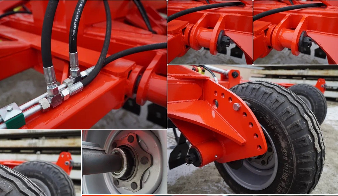 10. Транспортное шасси. Бескамерное колесо в сборе STARCO или ALLIANCE (усиленный диск = шина) 10.5/80-15.3 (14PR) (у культиваторов с шириной захвата 12 метров колесо 11.5/80-15.3 (14PR), 14 метров - 400/60-15.5), 6-ти шпилечная ступица STARCO, ROC, TVZ или ADR в сборе с усиленной осью (диаметр 65 мм). Специальное уплотнение на ступице обеспечивает 100% герметичность узла.