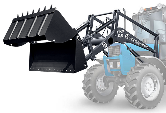 Челюстной отвал с шириной захвата 2 м. - универсальное устройство, которое одновременно является и ковшом в закрытом состоянии (вместимость 0,6 м3) для погрузки малосыпучих и сыпучих грузов (земля, песок, снег, зерно, минеральные удобрения и др) с удельным весом 10-15 кН/м3(1,0-1,5тс/м3), а также и бульдозерным отвалом в раскрытом состоянии, предназначен для очистки территорий от мусора и снега, а также для легких планировочных работ.