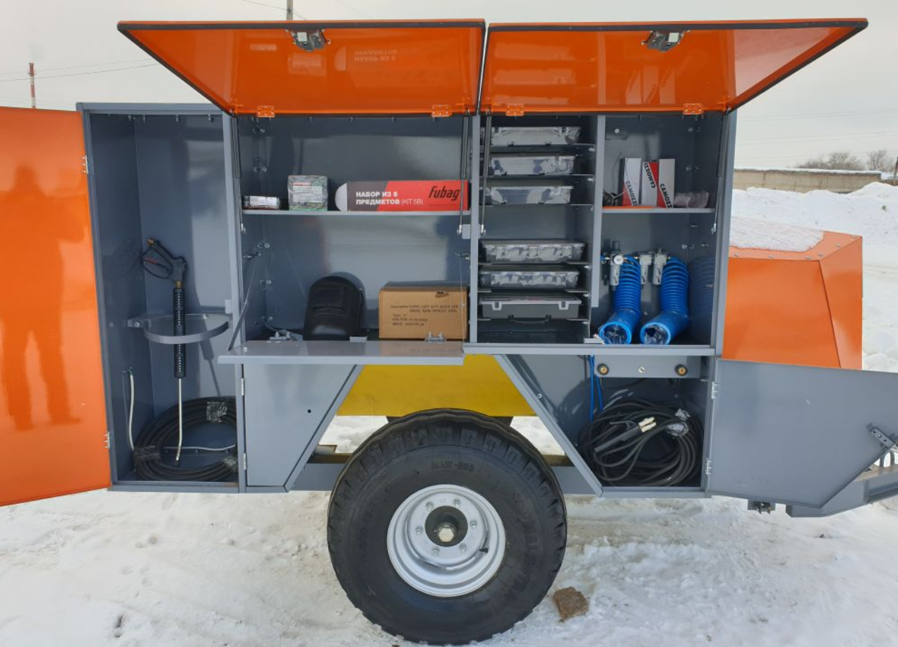 - Пневмоинструментом (дрель, отрезная машина, набор пневматических приспособлений для покраски, нанесения антикоррозийных покрытий, продувки радиаторов, накачки шин);
